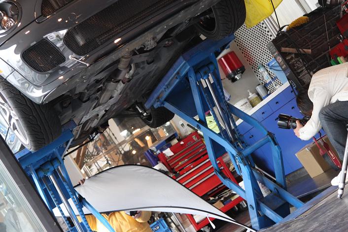 デモカーの下周りを、パチリと写真を撮ったりパーツの装着前と純正パーツ装着時のインプレッションなどを行いました[em_note]