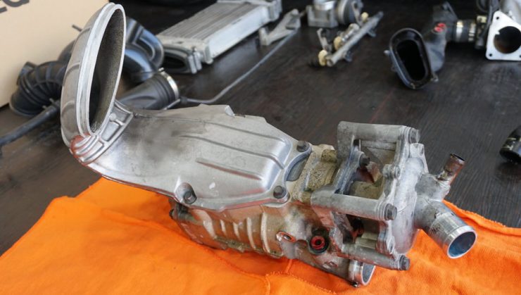 スーパーチャージャーの軸で回す構造なのでスーパーチャージャー丸ごと外さないといけないのです。