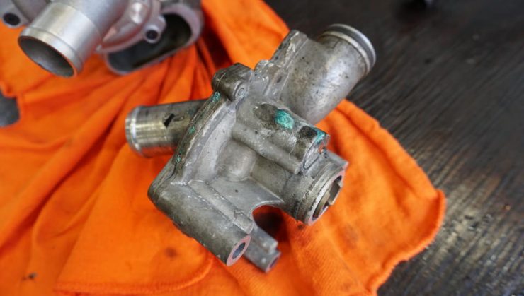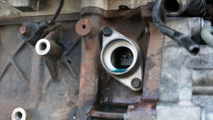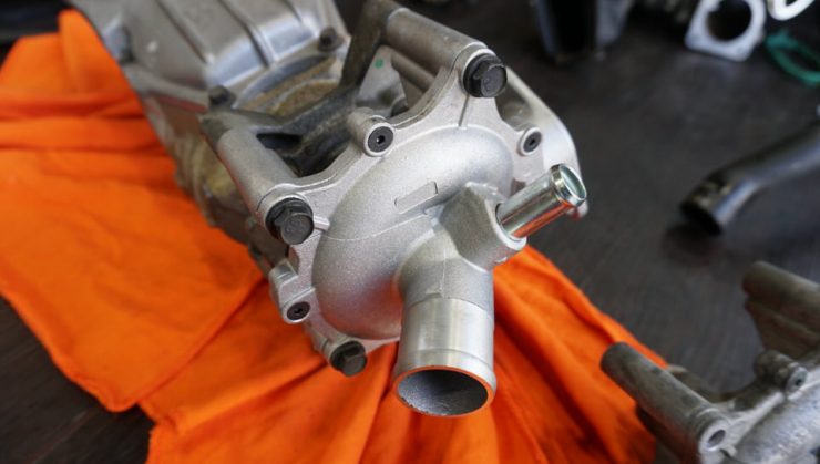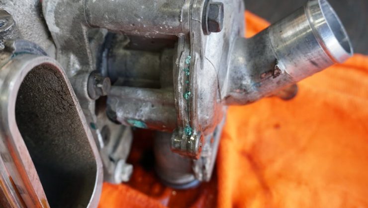 エンジンブロックとウォーターポンプを繋ぐフランジからも漏れ