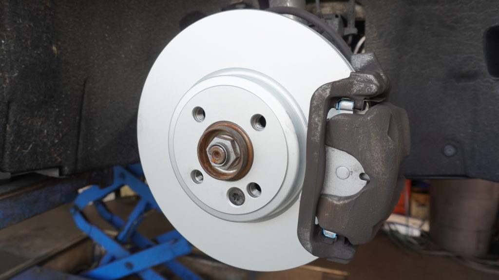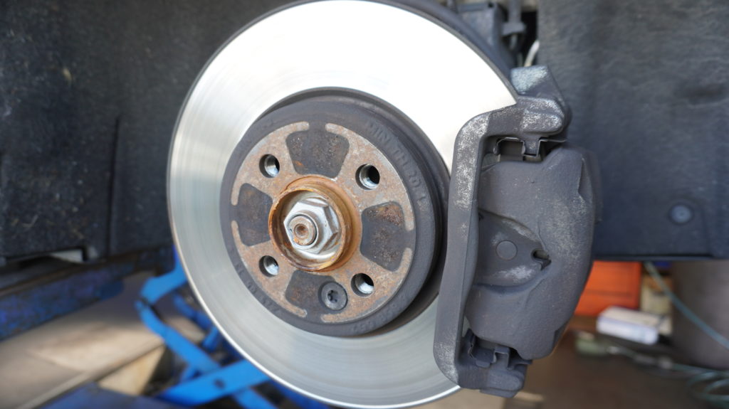 すり減った純正ブレーキパッド・ローターから、これまた低ダストパッドとディクセル製ローターに交換これでもうホイール汚れ・ブレーキの減りからオサラバですヨ~