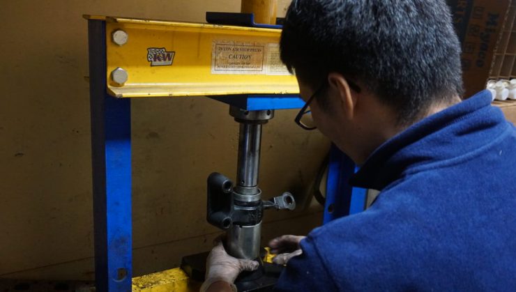 Dr.衛藤が油圧のプレスを使ってテキパキと打ち替えて行きます。