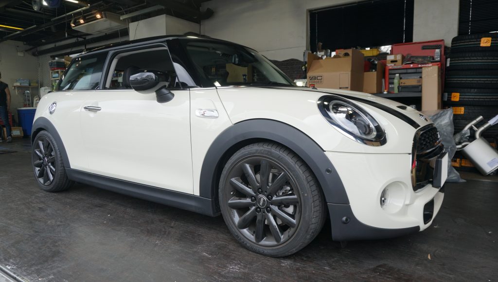 そしてコチラのF56クーパーSにはジオミックのサイド・リアエクステンションを塗装して取り付けしました![]()