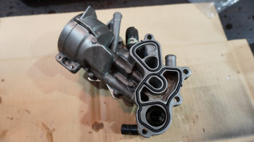 またまた新旧比較ですが、外した方の赤丸の箇所がひび割れを起こし、ここから液が漏れ出ていました![]()