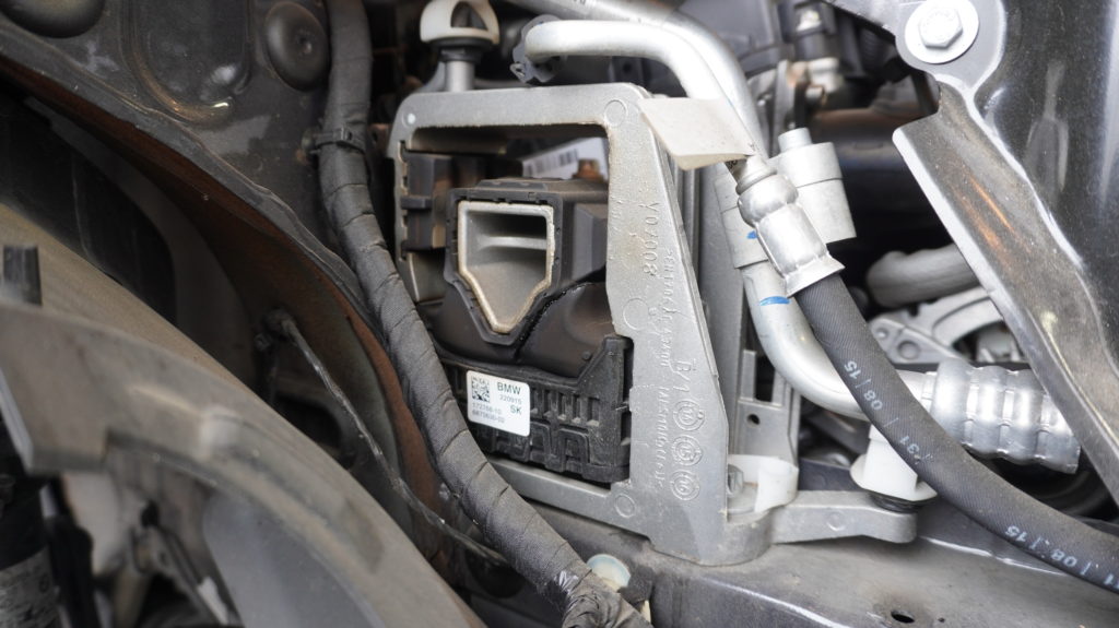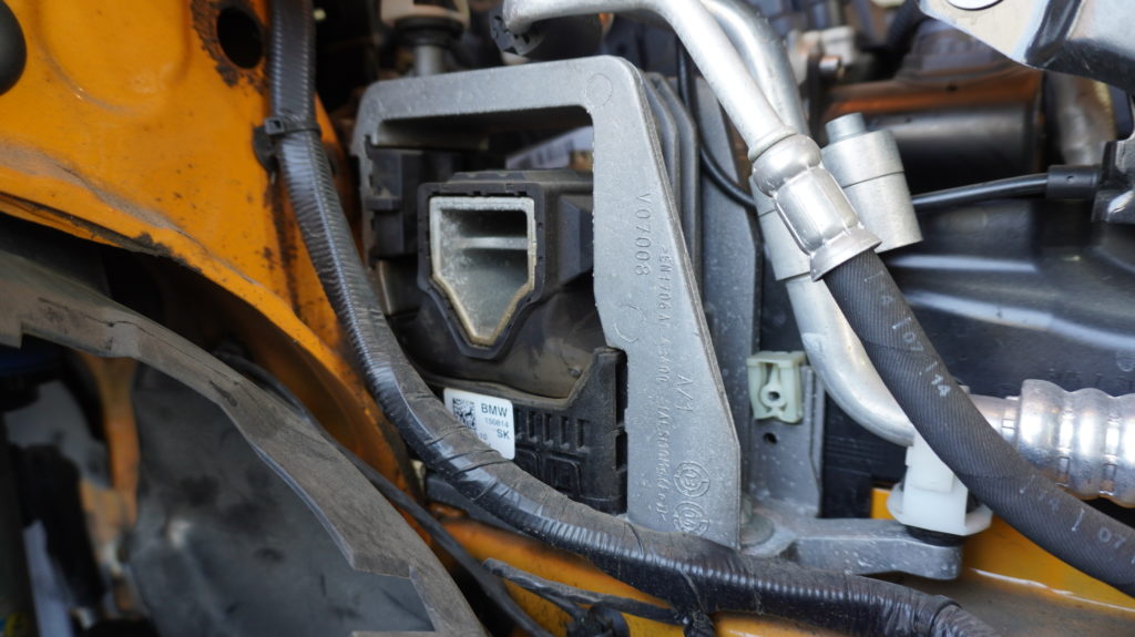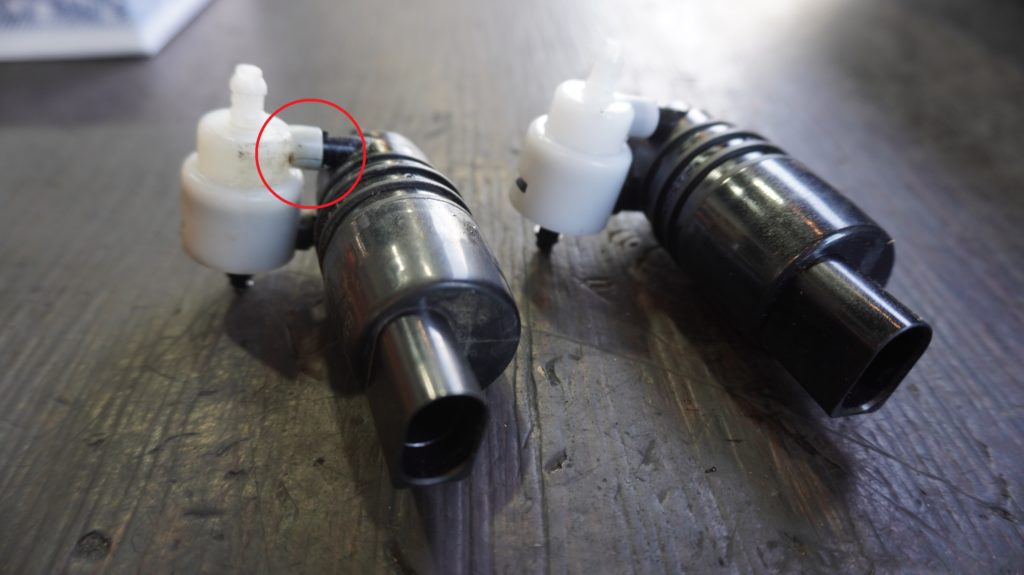 コチラは同じくF系(F56)のウィンドウウォッシャー部、中心がポンプになるのですがなにやら漏れ出ていて汚いですね、、