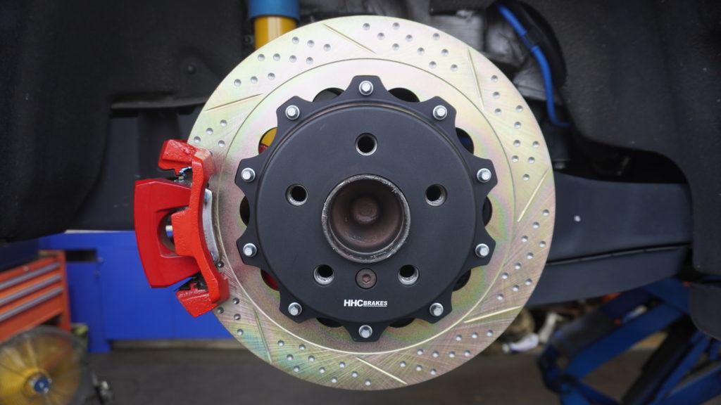 外径が純正の259mmから325mmまで拡大、ローター大径化はテコの原理で制動力UPに繋がりますから、前のめりだったブレーキング姿勢が前後平行を保ったまま吸い付くような感覚、になりますヨ![]()